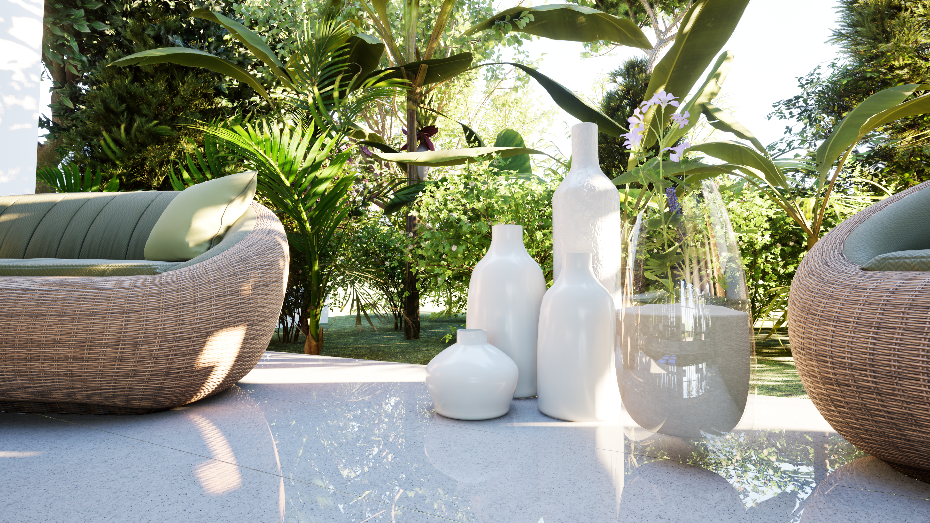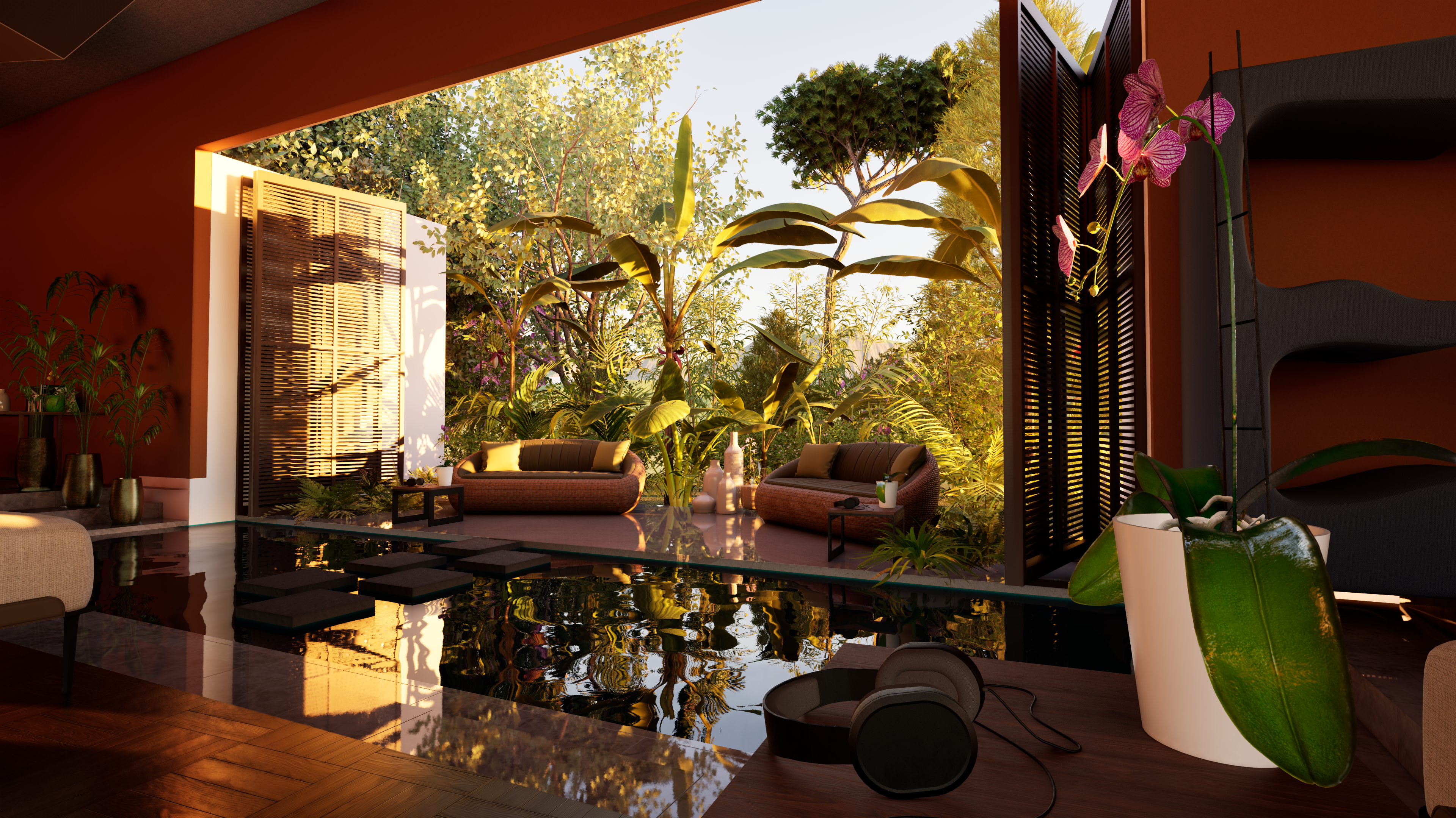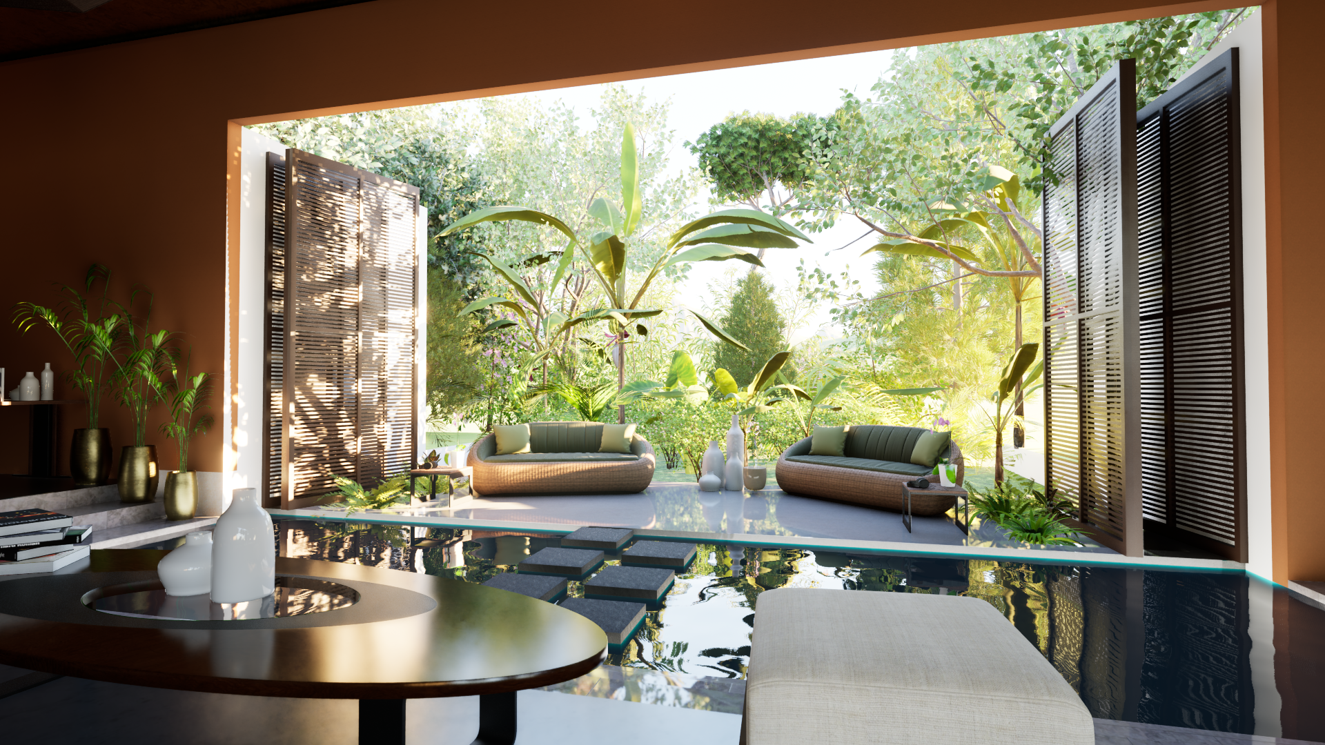 Local stone, Recycled materials, Natural finishes